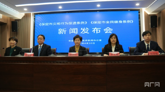 央广网保定4月11日消息(记者王艺霖)4月10日,记者从保定市新闻发布会上获悉,河北省第十四届人民代表大会常务委员会第八次会议已审查批准了《保定市文明行为促进条例》《保定市全民健身条例》,两部《条例》将于2024年5月1日起正式实施。